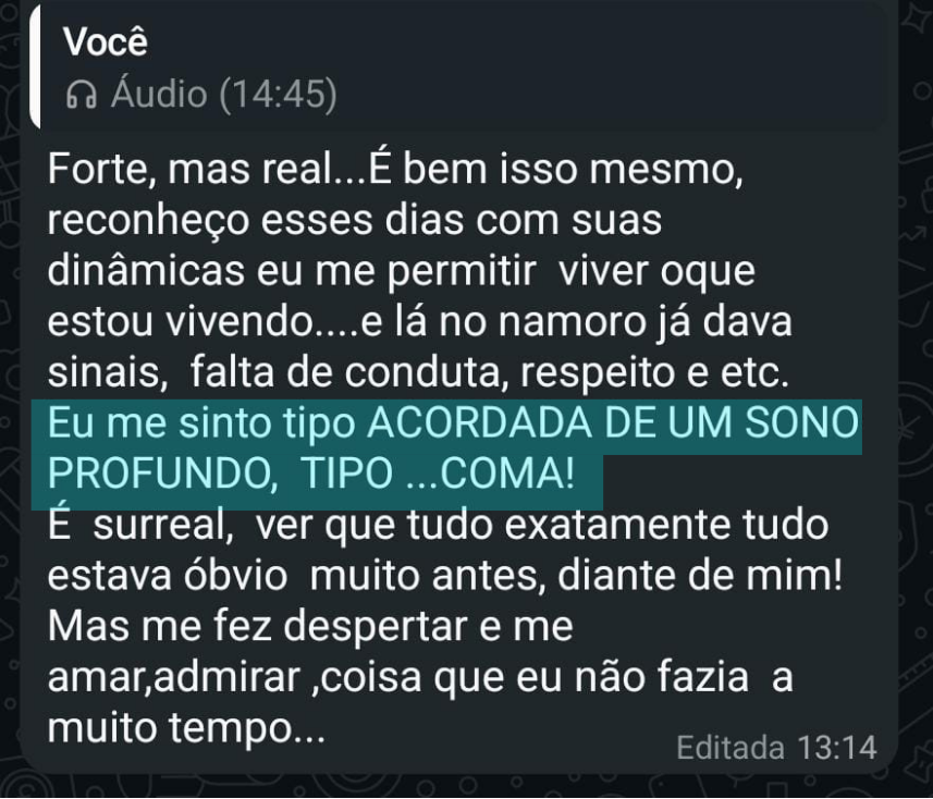 "Eu pedia, conversava, chorava. Nada mudava. No dia 2 eu entendi o que estava acontecendo de verdademe parei de fazer o que estava piorando tudo."